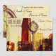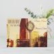 Vintage , New Yorker 5. Straße personalisierte Hochzeitsfeier: Die Terminankündigung mit flachem Eisen-Gebäude und Vintager Straßenuhr - stilvoll und elegant - ideal für New Yorker Hochzeiten