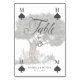 Wunderschön gestaltete Vintage Alice im Wunderland-thematische Hochzeitsschilder Tischnummer. Ideal für eine Hochzeit zum Thema Alice im Wunderland. Das Design zeigt unsere von Hand gezeichnet Original Alice, die unter einem Baum sitzt und Blume und Grünpflanzen um sie herum wachsen. Die Tischnummer ist wie eine Spielkarte mit dem Pickensymbol und anpassbaren Monogrammen für den Namen des Paares gestaltet. Elegante und Vintage Textiloptionen bereichern dieses magische, skurrile und ikonische Thema der Vintagen Alice im Wunderland. Von Moodthology Papery entworfen