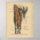 1888 Anatomie in deutscher Sprache. Vintage anatomische Illustration des Handatlas der Anatomie von Henke. Vordere Muskeln des weiblichen Oberschenkels. Oberschenkel Schrag von vorn, extensoren oberflachlich