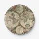 Elegante, rustikale Vintage antike natürliche Töne der Weltkarten-Papierplatten von Grauem, brünieren, bräunen sich, grünen und Rot. Wiedergabekarte von den 1600s. Cooler PapierTeller für ein Abschluss-Party (für den Absolventen, der gehende Plätze! ist), eine Reisefeier, Hochzeit in Urlaubsortsdusche, weg gehend Party, Abenteuerthema-Babydusche. Einzigartigerer PapierTeller ist in unserem Zazzle.com/angela65*-Speicher für Ihre besonderen Anlässe.