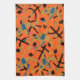 Vintage Illustration Art Deko Jazz pochoir Muster von Serge Gladky aus Fleurs, Ausgaben "Synth" Paris, 1929. Pochoir ist eine Schablonentechnik, die in surrealistischen Malereien üblich ist. Ein modernes Naturdesign mit goldenen Vögeln mit blauen Details auf einem hellen orangen und schwarzen geometrischen Hintergrund.
