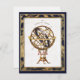 Vintage Illustration und antikes Himmelsbild mit Sphären, die Teile der Erde darstellen, einschließlich der Nord- und Südpol, der Tropen von Krebs/Steinbock und des Äquators. Gerahmt in einem schönen goldblauen und dekorativen Rahmen. Eine Säulensphäre ist ein frühastronomisches Instrument zur Darstellung der großen Himmelskreise, einschließlich der aufwändigsten Instrumente wie Horizont, Meridian, Äquator, Tropen, Polarkreise und Ekliptik.