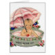 Retro/Vintage Babygrußkarte. Entzückendes kleines Baby, das in einer Wanne mit einem Regenschirm sitzt! Die Duschen-Geschenk des Babys!