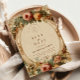 Ein elegantes Hochzeitsdesign im Vintage-Stil gerahmt mit verzierten barocken Schnörkeln und üppigen Rose in sanften Farbtönen, Pfirsich und goldenen Farbtönen. Der antike Pergamenthintergrund und die malerischen Details schaffen eine zeitlose und romantische Atmosphäre, die sich perfekt für ein klassisches Märchen-inspiriertes Fest eignet.