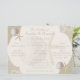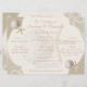 Vintage Hochzeitskarte am Strand, Burlap-Look mit Sand-Dollar und Seestern und hellrosa Text. Ändern Sie Text und Textfarbe wie gewünscht.