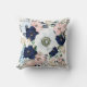 Dieses Kissen ist mit einem Vintagen Blumenmuster Rose in Marineblau und Rosa gestaltet.