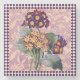 Hübsche Vintage Botanicals auf einem lila, gebeutelten Hintergrund mit lila und weißem Harlequin-Diamantmusterrahmen verleihen jeder Wohngestaltung ein hübsches Gartenelement