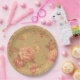 Set von acht 9" Papier Teller mit einem Vintage-Bild von einer Vielzahl von rosa Blume auf Bräune. Sehen Sie sich die gesamte Kollektion Muttertagsplatte im LEBENSMITTEL/BEV an. | Abschnitt Geschirr.
