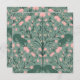 Ein wunderschönes, Vintag inspiriertes, blumengeschmücktes Rebmuster mit rosa Blüten, üppiger grüner Vegetation und eleganten Wirbel auf einem gedämpften grünen Hintergrund.
