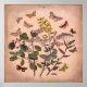 Vintage Botanische Blumenschmetterlinge Rustikal r Poster
