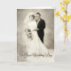 Herzlichen Glückwunsch an das Hochzeitspaar eine Vintage Braut und Bräutigam am Hochzeitstag.