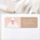Schönes, traditionelles Brautdesign personalisierte Adressetiketten mit einem Brautdesign in einer Hochzeitskleid Vintage Illustration vor individuell anpassbaren eleganten beigen Hintergrundfarbe. Der Text ist vollständig anpassbar, um Ihre persönlichen Daten einzubeziehen.