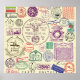 Set zur Briefmarke Vintager Dokumente. Ideal für Vintage Dekoration. Unendliches Vintages geometrisches Muster mit handgezeichnet Texturen. Eine zeitlose Freude! Set der Vintagen Briefmarke, um eine Touch der Geschichte zu Ihrem Dekor hinzuzufügen. Briefmarke, Brief, Vintag, Illustration, Retro, Mail, Dekoration, Set, Textur, Datum, antik, Form, Stil, Dokument, Hintergrund, Rahmen, Verkauf, Kreis, Grunge, Flagge
