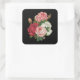 Vintage Cabbage-Rose - Schwarzer Hintergrund Quadratischer Aufkleber