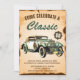 Die Vintage Geburtstagsfeier lädt Sie mit einem wunderschönen Vintage-Auto und Retro-Typografie vor Pergament-Hintergrund ein. Fügen Sie einfach Ihre Veranstaltungsdetails zu dieser einfach zu bedienenden Vorlage hinzu, um sie zu einer einmaligen Einladung zu machen. Dreh die Karte um eine rustikale Holzstruktur auf der Kartenrückseite zu zeigen.