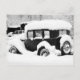 Schwarz-Weiß-Foto eines Oldtimer im Schnee.