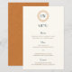 This vintage coastal wedding menu is designed for couples planning a beach or destination wedding with a modern vintage aesthetic. Featuring a refined art-deco influence and a balanced teal and warm orange color palette, it brings a polished yet relaxed feel to coastal wedding receptions. The subtle decorative detailing at the top adds a sense of structure and elegance, making the menu feel intentional and thoughtfully designed without overpowering the table setting.
