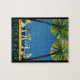 Französische und europäische Reisewerbung - Strand, Menschen, Palmen, blaues Meer und Himmelsdarstellung