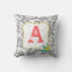 Gris Turquoise Corail jaune Floral Monogramme Damask Coussin de ferme