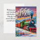 Treten Sie ein in ein Winterwunderland mit unserer skurrilen Weihnachtskarte mit einer klassischen Dampflokomotive, die durch eine verschneite Landschaft schlängelt. Dieser in Grün und Rot verzierte, bezaubernde Zug setzt sich aus weißen Rauchern und einem atemberaubenden Himmel zusammen, der mit wunderschönen Orange-, Rosa- und lila-Tönen bemalt ist - ein Ort, der perfekt für die Ferien ist. Umgeben von schneebedeckten Bäumen, majestätischen Bergen und einer festlichen Atmosphäre verkörpert diese Karte die Freude und Magie der Weihnachtszeit.