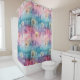 Vintage dandelion abstract pattern shower curtain featuring delicate seed heads layered over rich teal, pink, and muted purple watercolor textures. Dreamy and artistic with an ethereal mixed-media aesthetic, this seamless design is ideal for botanical art lovers, boho style fans, nature enthusiasts, and vintage-inspired decor admirers.