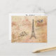 Vintage Eiffelturmkunst in Paris mit hübschen rosa Kirschblüten im Hintergrund, Eiffelturm und antiken Fahrradabbildungen, einem alten Liedblatt mit dem Titel "Paris im Frühling", Schmetterlinge, einer mit einem Liebe-Brief versehenen Schlucht und Retro Post Card, die mit einem Postzeichen aus der Vergangenheit versehen ist. Die blumigen Wirbel vervollständigen dieses Vintage Design des romantischen Paris im Frühling. Ich habe Paris im Frühjahr Liebe...Wie wäre es mit dir?