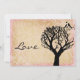 Die Rückseite der Einladung hat eine schwarze Baum-Silhouette mit den Liebevögeln im Baum zusammen mit dem Wort "Liebe" im Skript. Diese sind große Hochzeitsmitteilungen für Vintage Hochzeiten, Landhochzeiten, Gartenhochzeiten, Hochzeiten im Freien, Obstgartenhochzeiten und jede mögliche Hochzeit mit einem Liebevogelthema. Benutzen Sie einfach die Vorlagen, um Ihre Hochzeitsdetails auszufüllen, oder Sie können verwenden "besonders anfertigen es" Knopf, um die Schriftartgröße oder -art zu ändern, bewegen Sachen, addieren mehr Text oder löschen Einzelteile.