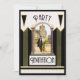 Vintage Party Einladung des stilvollen eleganten formalen Kunst-Dekos kennzeichnet einen Mann und eine Frau in Abend Kleid und Tuxedo, die zu einem besonderen Anlass vorangegangen werden. Hier dargestellt für ein Verlobungs-Party, kann Ihr Text zum Anzug besonders angefertigt werden jede mögliche Gelegenheit wie Geburtstags-Party, Jahrestags-Party, Abendessen-Party oder Cocktail-Party. Dekorative Elemente sind im Schwarzen, im Weiß und im Gold mit lila Akzenten auf den neoklassischen Architekturspalten erfolgt. Von einem Vintagen Kunstaufkleber vom frühen 1900's. Vintage Einladung macht ein schönes Andenken für Freunde und Familie.