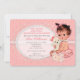Vintage Retro Baby-Duschen-Einladungs-Mädchen-Perlen und Spitzeteddy-Bärn-Koffer zacken Damast #221 aus (HELLES Hautton Brown-Haar Brown mustert)