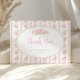 This thank you card features soft pink roses and gentle greenery in a classic vintage stripe design. The light, neutral background keeps the look clean, elegant, and timeless.