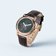 Eine elegante Armbanduhr in dunkelgrün mit schwarz-weißer Blütenlebenskunst mit personalisiertem Initial.