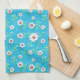 This design features a delicate spring floral pattern set against a soft blue textured background inspired by natural burlap fabric. Light, airy flowers create a fresh seasonal feel, while the subtle woven texture adds warmth and depth to the composition.