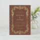 Diese elegante Hochzeitseinladung besticht durch einen verzierten, Vintagen Goldrahmen auf einem geruhsamen, rostfarbenen Hintergrund in Imitation eines antiken Buchdecks. Passen Sie den goldfarbenen Text mit Ihren Namen und Hochzeitsdetails an. Die Rückseite wiederholt das Rahmenmotiv und bietet Platz für Hochzeitsdetails, zusammen mit einem QR-Code, den die Gäste scannen können, um Ihre Website und UAWG zu besuchen, was die Kosten für den Druck und Versand separater RSVP-Karten rette.