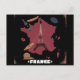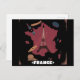 Iconic vintage style France map postcard with Eiffel tower, baguette, beret and escargot in bold retro colors. Perfect Parisian souvenir.