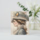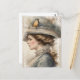 Eine Vintage Frau, die mit einem Vogel auf ihrem Hut in ihrer feinsten Kleidung gekleidet war und Kunst von der KI generierte