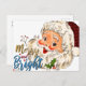 Diese festliche Postkarte besticht durch einen heiteren Weihnachtsmann im Vintagen Stil mit rosigen Wangen, einem karierten Hut und einem klassischen heiligen Gewürz. Die fett gedruckte "Merry and Bright" Schrift verleiht dem Urlaubsaufenthalt in Retro-Schriftart und glitzernden Tönen einen fröhlichen Beifall. Diese Postkarte ist perfekt für die Versendung von Feiertagsgruß an Liebende. Sie verbindet Charme, Tradition und Spaß.