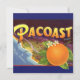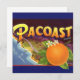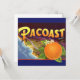 Vintage Illustration Fruchtkiste mit einer großen, reifen, Bio Orange mit Blume und einer Karte der Südküste des Staat von Kalifornien mit dem blauen Pazifik. Retro Werbung für Pacoast-Orangen, frische Zitrusfrüchte aus dem Bauernhof. Gesunde Ernährung mit Vitamin C.