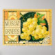 Vintage Illustration Obstkiste Kunstwerbung für Muscat Trauben. Die Werbung zeigt einen Haufen reifer, Bio, grüner goldgelber Trauben auf der Weinrebe der Thurber-Gesellschaft.