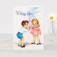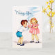 Vintage Geburtstagskarte mit einem kleinen Jungen und Mädchen, das einen Geburtstagskuchen mit Kerzen hält.