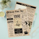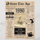 Die Vorlage enthält Details und Statistiken der 1990er Jahre mit Platz für persönliche Fotos und Informationen über die Ehrenbürger. Machen Sie es sich selbst, indem Sie Ihren Text und Ihre persönlichen Fotos (die Fotos werden automatisch zu sepia). Um auf erweiterte Editierwerkzeuge zuzugreifen, gehen Sie bitte zu "Personalisieren", scrollen Sie nach unten und drücken Sie den Link "Weitere Anpassungen vornehmen". Für weitere passende Designs klicken Sie auf den Link "Andere Produkte aus dieser Kollektion".