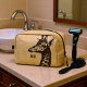 Die stilvolle Toilettentasche ist mit einer Vintagen, bräunlichen Giraffenkopfabildung auf hellbraunem Hintergrund ausgestattet. Personalisieren mit Namen oder Monogramm