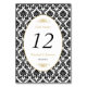 Diese Tischnummer-Karten sind ideal für alle Paare, die eine romantische Hochzeitsfeier für einen Jahrgang planen. Das Design zeichnet sich durch einen Vintagen Schwarz-Weiß-Damast-Hintergrund aus, mit einem dekorativen Goldrahmen mit einem verzierten, blumigen blüh und einer eleganten Formulierung in Schwarz und Gold. Das einfache Design kann personalisiert sein, um Ihre besondere Veranstaltung zu Anzug und wird die perfekte Tischnummer für jedes antike Party sein, einschließlich: Brautparty, Verlobungen, Polterabende, Geburtstagspartys und vieles mehr.