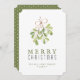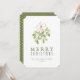 Vintage Green Christmas Card. Diese niedliche und festliche Urlaubskarte bietet Aquarellmaler Mistletoe und Frohe Weihnachten mit einem Familiennamen und Jahr. Die Rückseite ist ein niedliches grün-weißes Polka-Punktmuster.