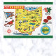Diese Postkarte zeigt eine Vintage Abbildung einer Ohio-Karte und eines Kardinals. Es heißt "Grüße von Ohio " . Foto Credit: Hope More, 2023. Genießen Sie Ihre neuen Vintagen Grüße von Ohio Postcard!
