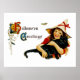 Vintage Halloween Grußbild, die ein Mädchen mit einer schwarzen Katze zeigt.