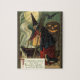 Vintage Illustration Halloween Urlaubsdesign mit einer bösen Hexe, die ihre Zauberhexe in einem schwarzen Kessel umwirbelt. Ein Vollmond, Fledermäuse, eine Katze und eine Jack-oder-Laterne mit einem geschnitzten beängstigenden Gesicht machen dieses Halloween-Bild zu einem vollendeten Erlebnis! Dieses Halloween und in dieser Braue wird die Hexe viel Glück für Sie rühren.