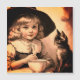 Vintage Halloween-Süsse in großer Hexenhut mit einem niedlichen Kätzchen . Große Magnetkarte für jeden, der Lieben von Jahrgangsbildern und niedlichen Hexen . __________ Das Vintag-Look Bild wurde von Canva AI erzeugt. Alma Wad, der menschliche Designer, hat es auf diese Karte angewendet.
