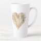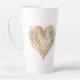 Das Herzstück dieser hohen Latte-Tasse ist im barocken Vintagen Stil mit romantischen dekorativen Schnörkeln und einem Gradientenmuster in Elfenbein, Braun und einer Touch von hellgrün auf der rechten und links Seite. Personalisieren Sie, indem Sie eine Initiale in einer klassischen Schrift in der Mitte des Herzens hinzufügen, entweder die gleiche Initial- oder die andere.