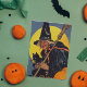 Vintage Hexe mit schwarzer Katze Karte