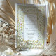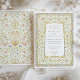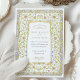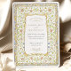 Diese romantische Hochzeitseinladung besticht durch einen verzierten Blumenrahmen, der durch antike Gartenbilder und beleuchtete Manuskripte inspiriert wird. Feine Aquarellfarben in Weiß, Pfirsich, Creme und Blau werden durch goldfarbene Reben an einer blassblauen Außengrenze gewebt, was ein reichhaltiges und zeitloses Design schafft. Die cremefarbene Mitteltafel beherbergt den einladenden Text in raffinierten Serif- und Kalligraphie-Schriftart und bietet eine harmonische Mischung aus Tradition und Eleganz. Die Rückseite setzt das botanische Thema mit einem komplizierten symmetrischen Blumenmuster in koordinierenden Farbtönen fort. Elegante Wirbel, Tulpenbuden, weiche Äste und Zierrollen ergänzen das Layout mit einem Storybook-Charme und machen diese Einladung ideal für Frühjahrsfeiern oder Paare, die eine Vintage romantische Touch suchen.